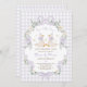 Invitación Silly Geese Twins Purple Bow Gingham Birthday