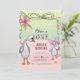 Invitación Silly Goose 1st Birthday Pink Bow Green Coquette