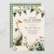 Celebrate your little silly goose with this irresistibly cute gender neutral baby shower invitation. The front features a warm cream background with soft watercolor bunting adorned with daisy florals, a sweet gosling gazing up at its mama goose, and charming, whimsical details that feel both playful and heartfelt.