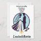 Una ilustración sofisticada de una pareja en un entorno de boda, con una novia y un novio en silueta dentro de un diseño circular elegante con anillos y acentos florales.