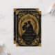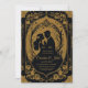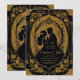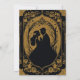 La elegante silueta de una novia y un novio rodeados de flores y adornos ornamentales. El diseño es una lujosa combinación de oro y negro, que desprende elegancia y refinamiento. Los detalles son muy detallados y le confieren un toque romántico y elegante a la invitación.