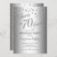 Invitación a la fiesta de cumpleaños 70 Diseño elegante con efecto falso purpurina de plata y Relieve metalizado. Contenti de diamantes de purpurina espumoso y tarjeta de invitación de escritura elegante. ¡Saludos a 70 años! Por favor, envíeme un mensaje si necesita más personalización.