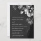 This elegant dark moody floral wedding invitation features silver gray flowers on a black background. Dark aesthetic wedding invitation with your photo in black and white on the backside.