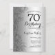 Invitación a la fiesta de cumpleaños 70 de Silver Black Floral. Diseño moderno minimalista con acentos de dibujos botánicos y tipo de letra de guión tipográfico. Sencilla carta de invitación a la moda, perfecta para una elegante celebración de cumpleaños femenina. Se puede personalizar a cualquier edad. Invitaciones Zazzle impresas o una plantilla imprimible digital de descarga instantánea.