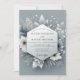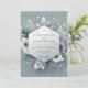 Embrace a cool and elegant aesthetic with this stunning artistic arrangement. A sophisticated monochromatic palette of slate blue, silver, and crisp white creates a serene wintry atmosphere. This design features a lush bouquet of detailed white blooms and frosted foliage with shimmering silver accents. Perfect for a chic union with timeless grace.