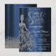 Invitación Silver Glitter Dress,Diamonds Navy Blue Sweet 16