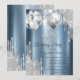 Invitación Silver Glitter Drips Balloons Blue Metallic 90th