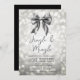 Invitación Silver Jingle Mingle Christmas Party Bow Bokeh