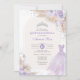 The perfect invitation for your daughter's quinceañera is finally here! This chic and lovely lavender quinceañera invitation features soft pastel purple roses, an elegant princess ball gown, a sparkly silver tiara and tropical boho elements. Click the "customize further" button if you wish to re-arrange and format the style and placement of the text.