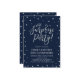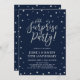 Celebra tu día especial con esta elegante plantilla de invitación a una fiesta moderna. Este diseño presenta confeti plateado con un fondo azul marino.