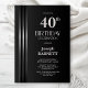 Invitación Silver Striped Black Grey 40th Birthday Party