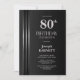 Invitación Silver Striped Black Grey 80th Birthday Party
