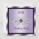 La fiesta de cumpleaños 60 de mujeres y chicas invita. Elegante, glamorosa y sofisticada invitaciones personalizados personalizadas de fiesta para mujeres/chicas con un impresionante diseño de lila con un marco de borde negro impreso en un brillante fondo de gradiente lila. En el centro se encuentra una impresionante imagen impresa de un patrón simétrico plateado de florecimiento y remolinos con una piedra de rombo de bonito en el centro. El reverso de esta plantilla tiene el mismo diseño de fondo lila y negro, en la parte inferior de la tarjeta se encuentra una imagen de remolinos plateados de bonito. Un diseño adecuado para cualquier mujer, y cualquier edad. Tarjetas perfectas para las celebraciones de mujeres y chicas. Un diseño moderno y de moda. Estas originales, únicas y ostentosas tarjetas se imprimen/decoran en ambos lados/impresión de doble cara. Todo el texto es totalmente personalizable para satisfacer sus necesidades. Si necesitas ayuda para personalizar tu producto, por favor contacta conmigo a través de mi tienda y estaré encantado de ayudarte.