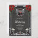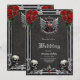 Invitación Simbiosis gótica, corazón elegante y calaveras.