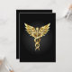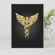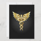 Símbolos de caduceo poligonal dorado sobre fondo negro aislado. Símbolo de medicina low poly.