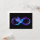 Símbolo de infinito violeta y brillante con colibrí azul sobre fondo negro. Neón.