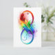 Símbolo de infinito dibujado artísticamente con hermosa pluma arco iris sobre fondo blanco. Estilo tatuaje.