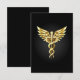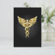 Símbolos caduceos poligonales dorados sobre fondo aislado negro. Símbolo de medicina de baja poli.