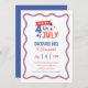 Invite a sus amigos y familiares a celebrar el Día de la Independencia con estilo con esta sencilla y moderna invitación a la fiesta del 4 de julio. Con un diseño minimalista con un borde ondulado y una tipografía elegante en colores patrióticos rojo, blanco y azul, esta invitación marca el tono perfecto para una barbacoa en el patio trasero y fuegos artificiales. Personalízalo con los detalles de su fiesta para que le den un toque personalizado. Disponible como invitaciones impresas o como una cómoda descarga digital, es la manera perfecta de iniciar su celebración de vacaciones!