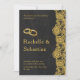 Invitación Simple Black Gold Floral Modern Elegant Wedding
