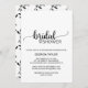 Esta sencilla tarjeta de invitación a la ducha de novia con caligrafía negra es perfecta para una ducha de matrimonio de temática moderna o rústica. El diseño minimalista incluye un elegante guión de broche y un bonito corazón femenino. El respaldo presenta un patrón clásico de hojas y ramas. Personalice las invitaciones con el nombre de la futura novia y los detalles de su evento.