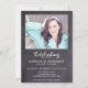 Funeral Rústico Memorial De Chalkboard / Celebración De La Invitación A La Vida. Estas invitaciones funerarias de simpatía incluyen una foto en una pizarra con un diseño en blanco y gris. Personaliza esta celebración de la invitación a un funeral de vida con fotos, nombres y fechas de tus seres queridos, detalles del evento. DERECHOS RESERVADOS © 2021 Judy Burrows, Black Dog Art - Todos los derechos reservados. Simple Celebración De La Invitación A Funeral De La Foto Memorial