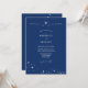 Invite your guests to a night of romance and starlight with this Simple Celestial Elegant Blue Wedding Details and Invitation from the Celestial Elegant Wedding Collection. Featuring a deep navy blue background adorned with twinkling stars and refined typography, this modern celestial design is perfect for couples who love a minimalist yet luxurious aesthetic. Easily personalize with your names, wedding date, and venue details for a fully customized touch. Ideal for celestial weddings, winter celebrations, or elegant evening receptions. Pair it with matching RSVP cards, programs, menus, and signage for a cohesive wedding suite.