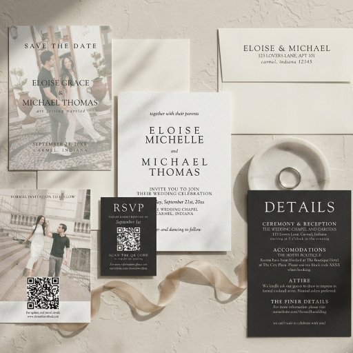 This Simple Charcoal Photo Classic QR Code Wedding Invitation is designed for couples who love timeless elegance and clean, modern style. Featuring refined serif typography, soft ivory tones, and a balanced, uncluttered layout, this suite creates a sophisticated first impression for your wedding day. Easily customize the details with Zazzle's design tool! Have a custom request? Message me!