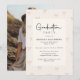 Invitación de Graduación de Foto Simple Coquette Bow - con un marco coquette neutral de moda con la foto de la graduada en la parte posterior de la invitación.