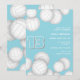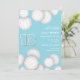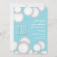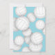 Esta invitación de fiesta temática de voleibol para un cumpleaños o fiesta de equipo incluye grupos de bolas de voleibol blancas en los bordes superior e inferior del frente y un solo clúster que cubre la parte posterior de la invitación - personalizar los detalles del fiesta sobre cualquier fondo de color personalizado, actualmente color de huevo azul - de katz_d_zynes