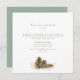 Invitación de Acción de Gracias con Piña de Pino y fondo blanco y salvia.