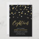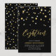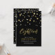 Celebra tu día especial con esta invitación de cumpleaños número 18 simple y minimalista. Este diseño presenta una elegante letra script "Dieciocho" con confeti en forma de hexágono en una combinación de colores negro y dorado. Más diseños disponibles en mi tienda BaraBomDesign.