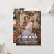Esta moderna invitación e invitación a graduarse te permite destacar tus fotos favoritas. Con un relleno degradado en la parte inferior, el guión blanco destacará sobre cualquier foto. El reverso es perfecto para enumerar los detalles de la ceremonia o dar una visión general de sus planes del año pasado o futuros.