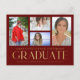 La postal simple de Invitación de graduación multifotografía con guión simple incluye cuatro de tus fotos favoritas de tu graduado universitario o de secundaria en el frente con el elegante y moderno guión de caligrafía dorada "Graduado". Sencillo, elegante y elegante. Creado por ©Evco Studio www.zazzle.com/store/evcostudio