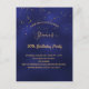 Delante: Una moderna y moderna tarjeta de invitación para la fiesta de cumpleaños número 50 (o cualquier edad) para los hombres. Un fondo azul oscuro, azul marino. El color azul es desigual. Con confeti dorado, letras de colores dorados. Personalice y agregue un nombre y la información de su fiesta. Atrás: diseño postal. Sugerencia: Si no desea que se vea como una postal, haga clic en personalizar, vaya a la parte posterior y quite el separador y el sello postal.