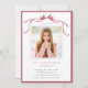 Invite friends and family to celebrate the graduate with this elegant invitation, featuring a deep blush ribbon bow with a photo.