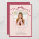 Invite friends and family to celebrate the graduate with this elegant invitation, featuring a deep blush ribbon bow with a photo.