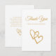Una tarjeta plana de agradecimiento de boda de doble corazón de color dorado simple que puedes personalizar con un mensaje especial de agradecimiento. Perfecta para bodas y aniversarios.