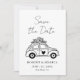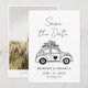 This simple, elegant, and boho save-the-date wedding photo invitation card is the perfect choice to tell your guests to reserve the date for your special day! The design features a cute hand-drawn wedding car decorated with flowers and a heart, with the ´´Save the Date´´ in handwritten script above it. The text under the photo is in elegant lettering. The reverse features your personalized photo, framed in elegant white with a custom text below. Make it yours by pressing the "personalize button", changing the picture, and replacing the text with your information. Your guests will love it!
