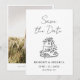 This simple, elegant, and modern save-the-date wedding photo invitation card is the perfect choice to tell your guests to reserve the date for your special day! The design features a beautiful hand-drawn wedding cake decorated with flowers, with the ´´Save the Date´´ in handwritten script above it. The text under the photo is in elegant lettering. The reverse features your personalized photo, framed in elegant white with a custom text below. Make it yours by pressing the "personalize button", changing the picture, and replacing the text with your information. Your guests will love it!