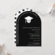 El sencillo diseño de un gorro blanco y un texto gráfico de tassel y blanco sobre el fondo negro clásico le da a estas invitaciones arqueadas de la fiesta de graduación un toque moderno con interés visual. Fácil de personalizar, esta invitación se puede cambiar fácilmente a una invitación de graduación . Estas tarjetas se revierten a un fondo blanco con un patrón repetido de tapón negro en los borlos. Añada el nombre de su graduado al texto en arco y al fiesta -o invitación- detalles a través de las plantillas de texto para una celebración de graduación de un tipo.