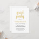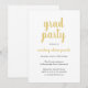 Simple invitación a una fiesta de graduación con un diseño clásico con "fiesta de grado" y el nombre del graduado en una espesa escritura de escritura dorada sobre un fondo blanco. Una elegante invitación con un moderno toque minimalista para un graduado chica.