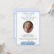 The invite features an oval shaped portrait photo with elegant simple border of a sage green line. Blue small pretty flowers symbolizes everlasting love and remembrance.
