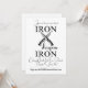 Minimalist Iron sharpens Iron with crossing knives, Christian Men's Retreat Invitations. Simple modern black and white typography. Proverbs 27:17 in the King James Version of the Bible says, "Iron sharpeneth iron; so a man sharpeneth the countenance of his friend". KJV scripture verse. Add your Church Name/Venue or City/Date of Event/Website or RSVP info.