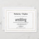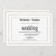 A simple minimalist modern black, white, and gold trendy typography theme wedding invitations.