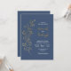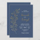 Invitación Simple Modern Gold Leaf Blue Wedding