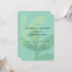 Simple, modern baby shower invitations with blue-green background and layered leaf patterns.
