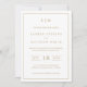 Simple invitación a la boda con un diseño moderno y elegante con tu monograma de dos letras en la parte superior, un diseño de fecha audaz y tus detalles rodeados de un delgado borde. Todo el texto está en oro falso sobre un fondo blanco. Las fuentes y los colores de fondo pueden cambiarse a los colores que desee. Una moda y un diseño de diseño, ideal para una pareja minimalista.