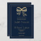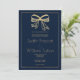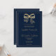 Invitación Simple navy blue gold glitter bow ribbon Wedding