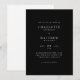 Invitación a la boda blanca y negra. No hay padres en la lista. Fuente moderna. Sencillo.